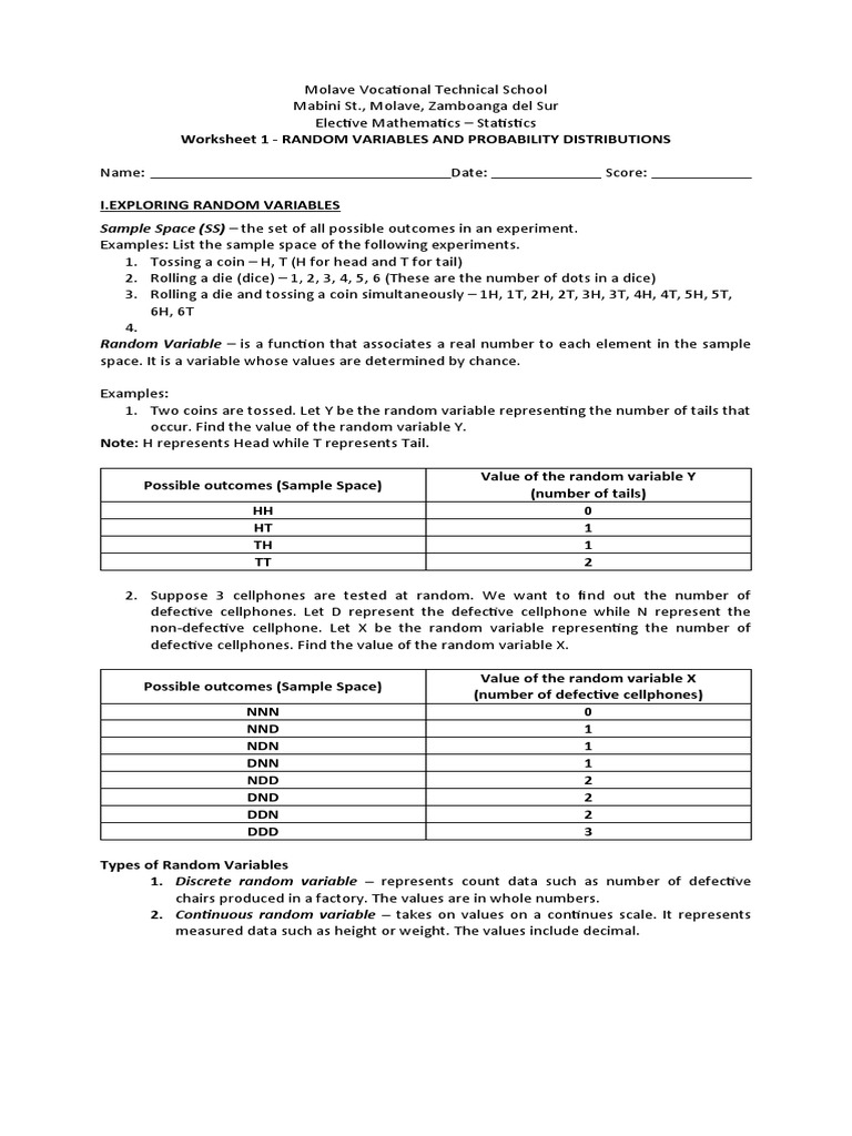 › worksheets › probabilityBrowse Printable Probability Worksheets | Education.com For your event determine the number of ways an event can happen and the total number of outcomes. For example, when flipping a coin, it will land on either heads or tails, so there is only 1 "event" that can happen. However there are two possible outcomes. So, the probability of the coin landing on heads is 1/2. study.com › learn › high-school-math-worksheetsHigh School Math Worksheets | Study.com Our high school math worksheets cover a wide range of math topics from algebra 1 to calculus, giving your students the practice they need. ... Calculating Possible Outcomes. 99K. Trigonometry ... EOF